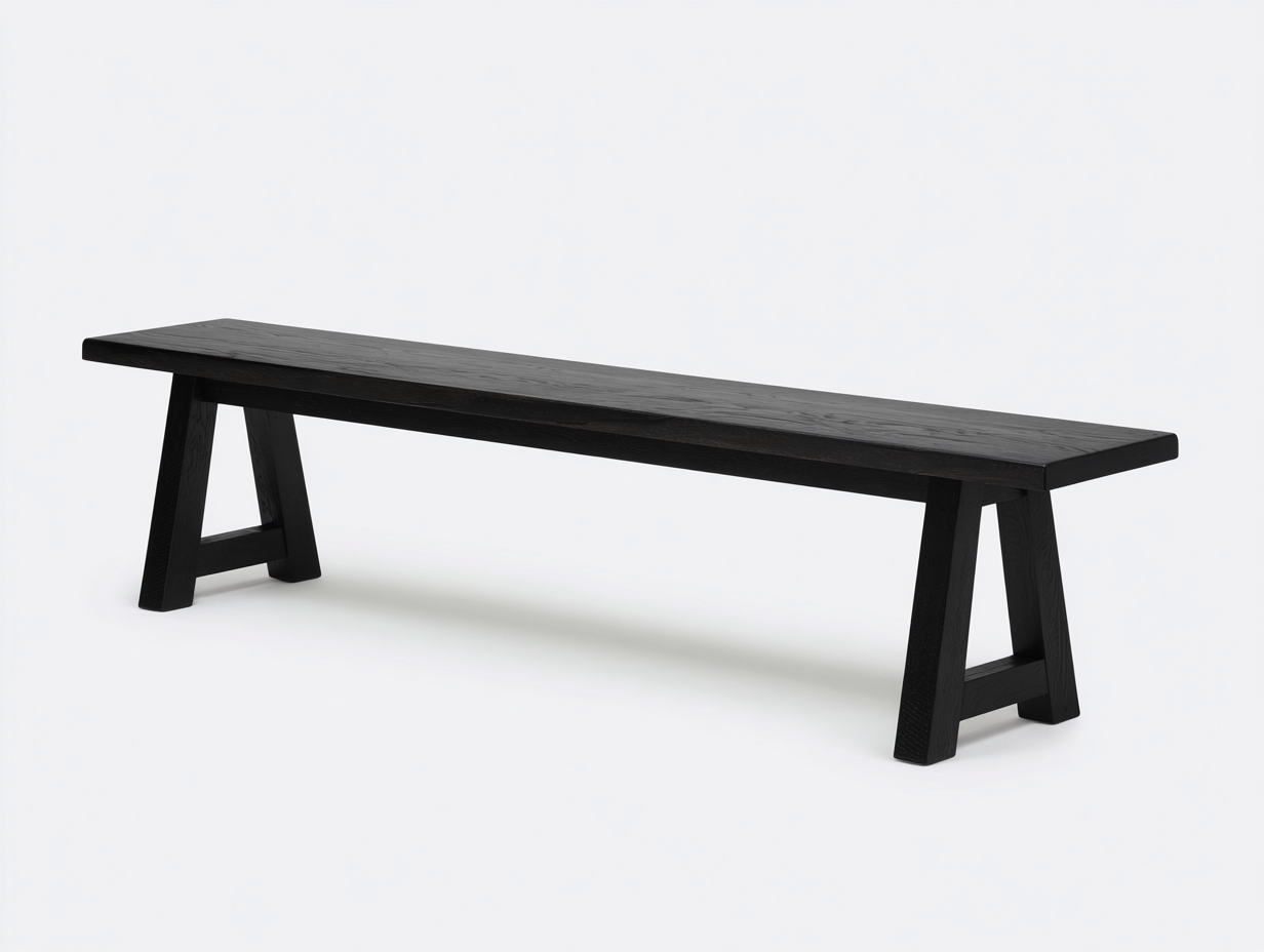 Gefertigt aus robustem Holz mit schwarzer Oberfläche, zeichnet sich die Bank durch eine stabile und langlebige Konstruktion aus. Die solide Rahmenstruktur mit verstärkten Seitenelementen sorgt für zusätzliche Stabilität und eine zuverlässige Nutzung.