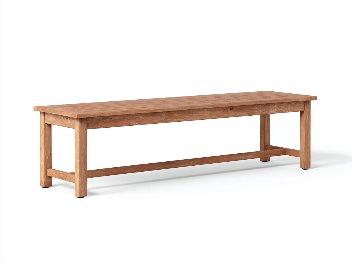 Gefertigt aus robustem Holz mit natürlicher Maserung, zeichnet sich die Bank durch eine stabile Konstruktion und langlebige Qualität aus. Die sorgfältig verarbeiteten Holzleisten sorgen für eine gleichmäßige Oberfläche, während die Querstrebe zusätzliche Stabilität bietet.