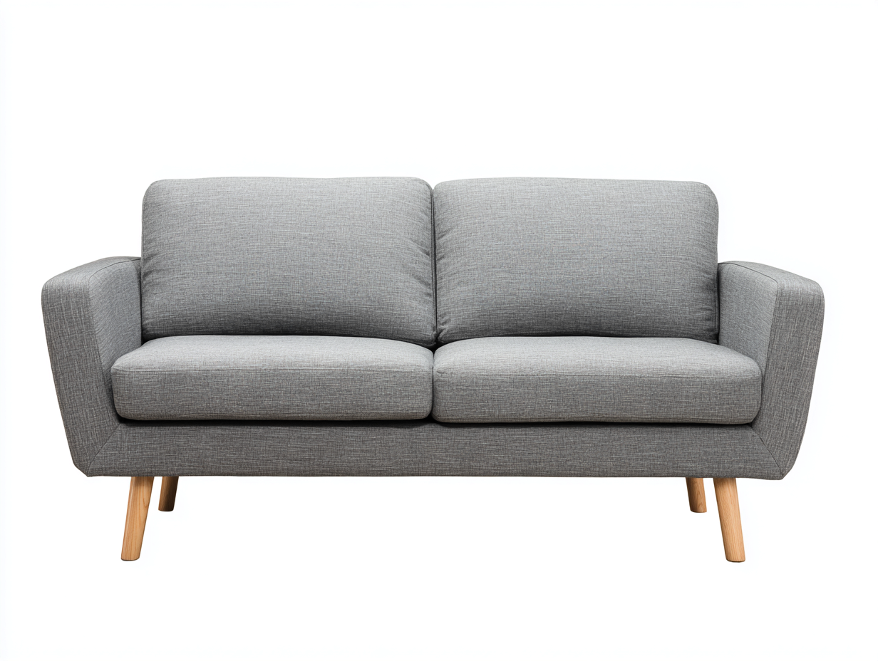 Der Bezug besteht aus strapazierfähigem Stoff in Grau mit angenehmer Haptik und pflegeleichter Oberfläche. Die stabile Innenkonstruktion sorgt für zuverlässige Unterstützung im täglichen Gebrauch. Die massiven Holzbeine in Naturfarbe bieten sicheren Stand und verleihen dem Sofa eine warme, natürliche Ausstrahlung.